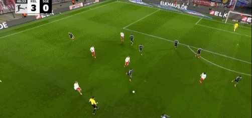 第31分钟,相互传射,哈德助攻鲍姆加特纳破门,莱比锡2-0法兰克福